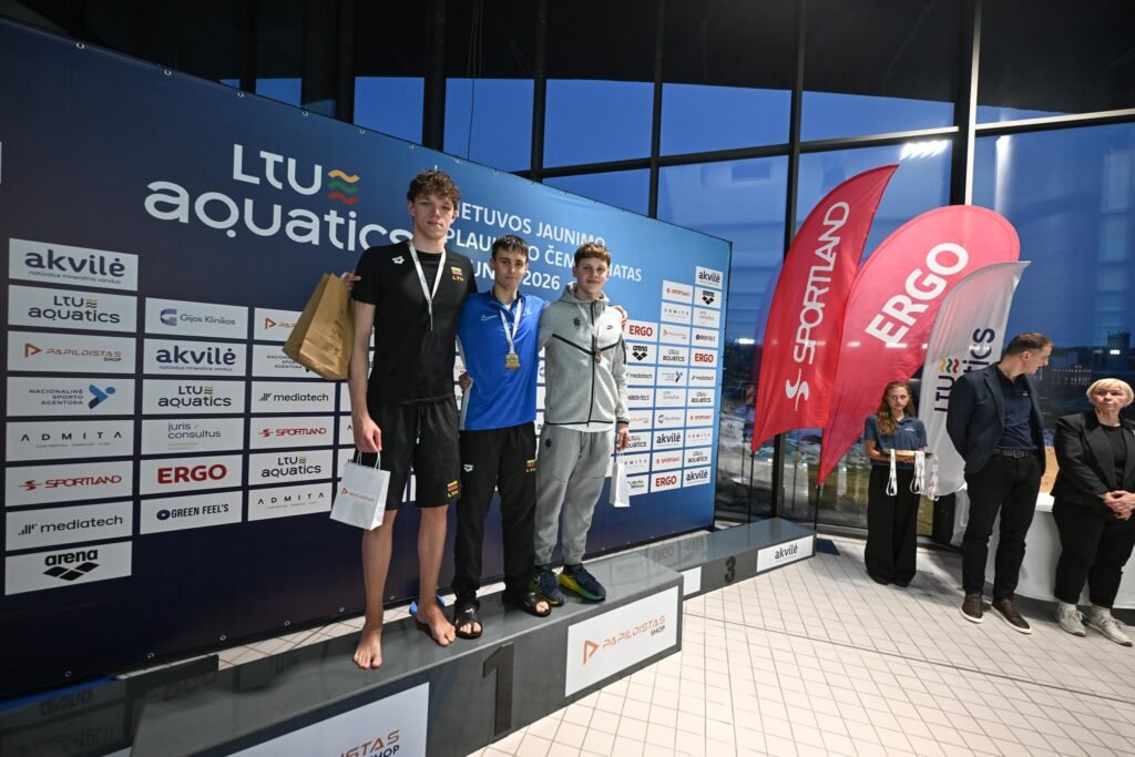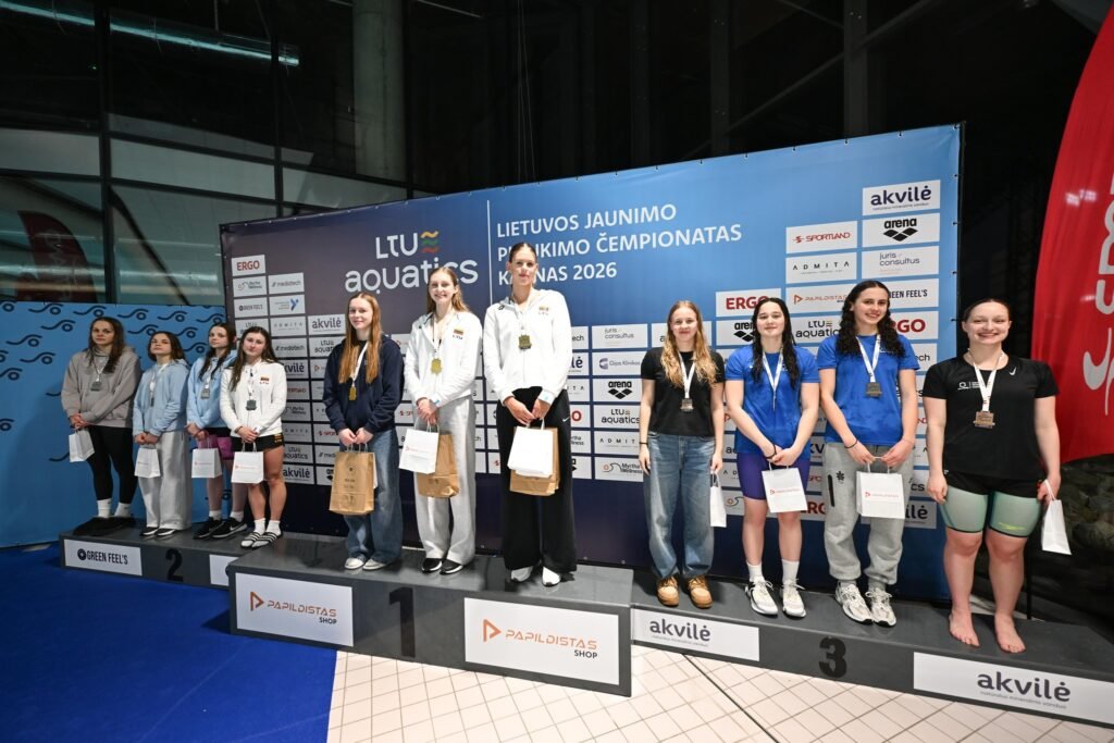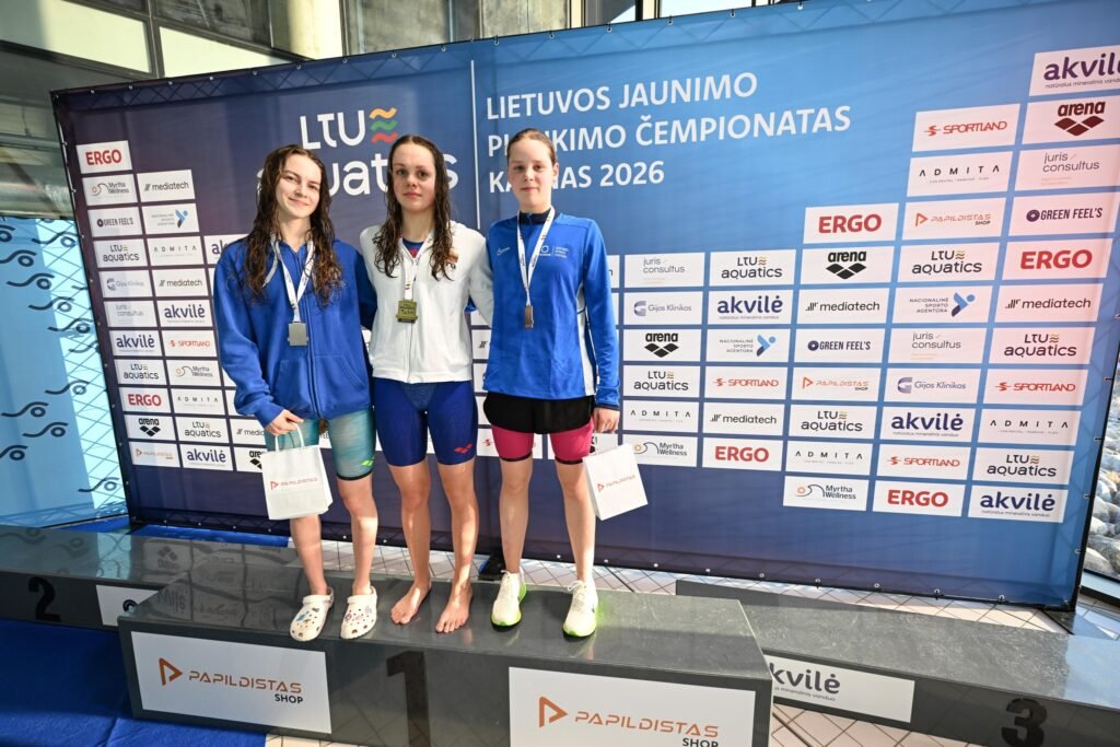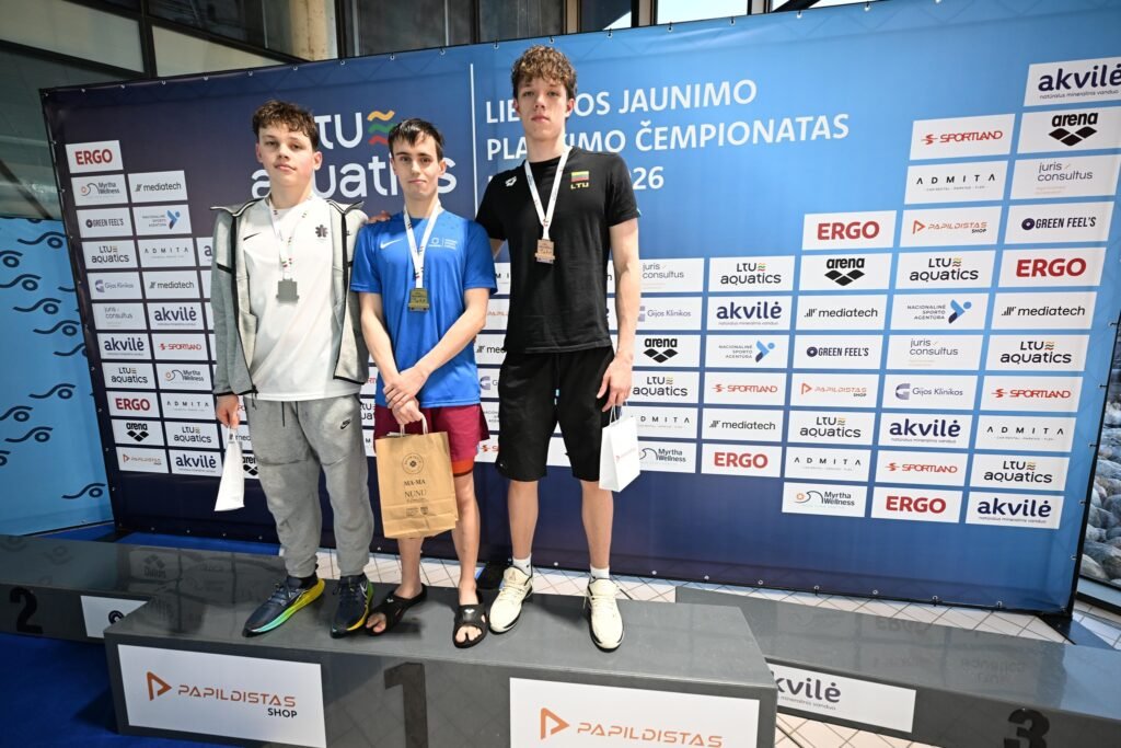 Sveikiname Lietuvos jaunimo plaukimo čempionato, vykusio Kaune, 2026 m. vasario 27-28 d., nugalėtojus ir prizininkus bei jų trenerius Dovilę Pocienę, Paulių Povilionį, Robertą Šuipį ir Martyną Kasperavičių.