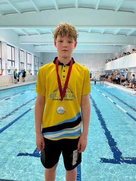 Sveikiname vaikų plaukimo varžybų „Auksinis pajūris“, vykusių 2026 m. balandžio 9 d., nugalėtoją ir jo trenerį Egidijų Šiautkulį.
